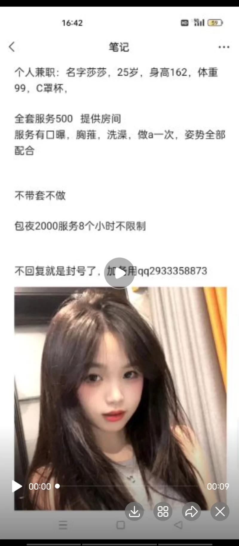 威客管理提示:要求付定金 保证金的,总之提前要钱的都是骗子 在群里看见的 选择了很久 看见她的空间照片瞬间感觉受不了 于是马上联系她 正好有空自己租的公寓 一开门与看见的相差不大于是就开始脱衣服先用口 本来想先口爆她的 她不让 直接按在床上干