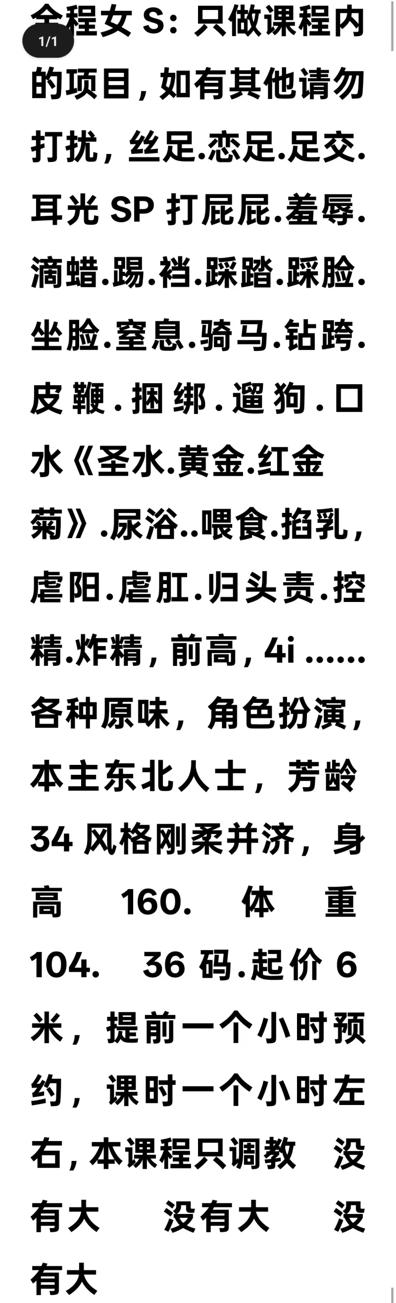 服务项目: 丝足,耳光,羞辱,皮鞭等SM,无大